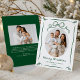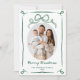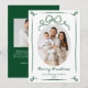 Send warm holiday wishes with this elegant Christmas photo card featuring your favorite photo bordered by a flowing green ribbon frame. A hand-drawn bow adorns the top of the design above an oval photo, while “Merry Christmas” is displayed below in a graceful handwritten green script with your family name and the year beneath. The back showcases an additional photo and space for your custom message, creating a timeless and festive card to share with family and friends.