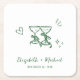 Whimsical Hand Drawn Green Wine Glasses Wedding Underlägg Papper Kvadrat