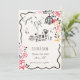 Trendiget hand plockade stil illustrerade bröllop spara datum inbjudan med en flytande vågigt i blommigt gräns och på middag bord inslag. Den visuella och snabba utformningen omfattar handskrivna teckensnitt och firande-dockor. Svarta och vita stil för klassiskt men modernt bröllop stillastående.