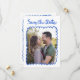 magin i ditt kommande bröllop med den här vismska handmålade blå Spara datumfotokortet. Framsidan har en delikat vågigt vattenfärg ram som på ett vackert sätt framhäver ditt favoritfoto, med en lekfull handskrift Spara datumtexten som flyter ovan för att med glädje tillkännage ditt speciella ögonblick. På baksidan omger en underbar Dodle-stil oliv grönt ram din personlig, ditt namn, bröllop-datum och en anpassningsbar webbplats, komplett med en automatiskt genererad QR-kod för snabb gäståtkomst. Med sin charm och sina blåa toner ger det här kortet perfekten för bröllop av alla slag, oavsett om du drömmer om en trädgård firande eller ceremoni i naturen. Designat att para sömlöst med vår matchande bröllopsinbjudningssvit, skapar det ett vackert sammanhängande utseende som gästerna kommer att minnas. Att anpassa är enkelt och roligt, det behövs ingen nedladdning av softwarn. Klicka bara om du vill redigera onlinen och göra den helt till din. Det är perfekten till ge för dina gäster en uppriktig förhandsvisning av firande till kom. Tillgänglig utskriven eller som digital nedladdning.