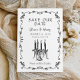 Meddela er speciella dag i stil med vår Whimsical Hand-Drawn Bow Candelabra Bröllop spara datum. Med en elegant candelabra som är försedd med rosett band och ömtåliga kvistar, exuderas charm och romantik. De handdragna detaljerna och den roliga typografin gör det till perfekt för sagolteman, vintage eller bröllop. Anpassa med dina uppgifter om bröllop för att skapa en minnesvärd keepy för dina gäster. Ett vackert sätt att se till att dina kära markerar sina kalendrar för din magiska dag!