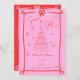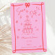 Trendiget hand plockade stil illustrerade hur du kunde spara datuminbjudan med en klocka och champagne torn. Den visuella och snabba utformningen omfattar handskrivna teckensnitt och firande-dockor. Rosa och rött för en roligt och modern stationär insamling av bröllop.
