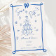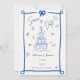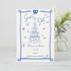 Trendiget hand plockade stil illustrerade hur du kunde spara datuminbjudan med en klocka och champagne torn. Den visuella och snabba utformningen omfattar handskrivna teckensnitt och firande-dockor. Koboltblått och vitt för klassisk men modern stationär bröllop.