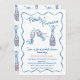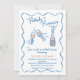 Prosecco Inbjudningskort för möhippan Hand plockade petals och åklagarco inbjudningskort för möhippan i Hand plockade och blått med två glasögon och ett mousserande vin flaska. Även detta petals och åklagarämbete inbjudningskort för möhippan uppvisar ett krångligt ram gräns och ett mönster på ryggen.