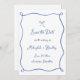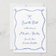 Whimsical Handritad Båge Fransk Blå Bröllop Spara datumet med en vågig banderoll och handskriven teckensnitt. Lägg till extra detaljer på baksidan.