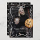 Svart och Vit Whimsical Handritad Skelett Båge Ram Halloween Foto Högtidskort.