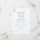 Whimsical Handritad Blå Illustrerad Bröllop Spara Datumet