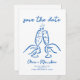 Chic Modern Whimsical Handritade Klotter Fransk Stil Blå Vit Bröllop