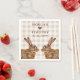 Personalizable wedding paper napkins featuring a beige gingham background with two brown hare heads facing each other. At the top, the couple’s names can be added with a brown heart silhouette between them, along with a separate personalizable area for the wedding date. Ideal for rustic, countryside, woodland or spring wedding table settings.