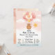 Charming baby shower invitation featuring an adorable teddy bear floating in a hot air balloon with colorful balloons and clouds. Perfect for announcing a baby boy or girl arrival with customizable text. Pastel pink, cream, and gold color palette creates a soft, memorable invitation. Includes date, time, location, and RSVP details. Ideal for printing and digital sharing. Download and print at home or order professionally printed invitations.