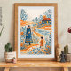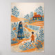 Whimsical illustration av mor och barn i folkkonst poster