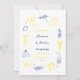 Sätt tonen för din speciella dag med detta nyckfulla save the date-kort med handritade gula och blå Amalfi-kust citroner, livfulla blommor och en vinram. Perfekt för ett italienskinspirerat bröllop, denna unika design fångar charm från Amalfi-kusten med lekfulla, konstnärliga detaljer. Idealiskt för par som söker en kreativ, medelhavsinspirerad känsla för deras bröllopsinbjudningar.