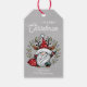 En söt, fantasifull julgnom på en silvergrå bakgrund, dessa personliga etiketter är bra att lägga till festliga fester eller presenter.