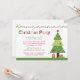 Denna 5x7 julfirande inbjudan har en rosa och grön fantasifull och rolig design. Överst finns en ljusträd. Till höger finns en julgran med två presenter under. Till vänster kan du enkelt anpassa din festinformation. Denna inbjudan är ett roligt och festligt sätt att meddela att du har en träff! Illustration av http://www.mygrafico.com/kelly-medina/aff_76.html