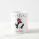 Whimsical illustration av svart-vit groda med röd tomtehatt, en rad med julbelysning och anpassningsbar text "God Jul" gör en perfekt julmugg för arbete eller hemmet.