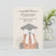 Detta Whimsical Kalligrafi Examen Båg Foto Tillkännagivande har en vacker, handmålad akvarellskiss av en examen från en bakifrånvy. Designen framhäver en stilren svart mössa prydd med en delikat kant av vita pärlor och en fantastisk, överdimensionerad tygbåg med långa, fladdrande svansar. För att fullborda looken håller examen en frodig bukett av krämfärgade vita rosor.
