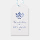 Denna bröllopsshowers tacksamhetsetikett är baserad på den populära handritade trenden som visar fransk eller italiensk mat och dryck i en lekfull, klotter-, klotterstil. Denna design är idealisk för en bröllopsbrunch. Den har handritade illustrationer av en vas med blommor och en tekanna, tillsammans med ett handskrivet teckensnitt.