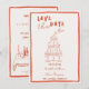 Handritad bröllopsinbjudan för att spara datum, rolig blyertsteckning