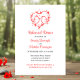 Your rehearsal dinner details are printed in pretty red script with clean black text, so everything is easy to read and looks polished without being too formal. The red and white colors give it that soft boho vibe you love — the kind that works for an outdoor summer dinner, a romantic spring evening, or any gathering where you want things to feel relaxed, joyful, and full of love. If you’re a nature lover or you just adore cute little details that make people smile, this design is going to feel so you. The love heart moment at the top is sweet without being cheesy, and it sets the tone for a night that’s warm, personal, and full of happy anticipation. Just add your names, date, time, and location — and it becomes this heartfelt little keepsake your guests will love receiving. It’s simple, charming, and completely your style.