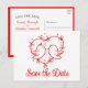 A sweet and cheerful "Save the Date" postcard designed for couples who love nature, warm moments, and a playful touch of personality. The whimsical lovebirds illustration and heart add a cute and unique feel that complements boho weddings, outdoor summer celebrations, and relaxed spring gatherings. The red and white color palette keeps everything bright, joyful, and full of charm. Personalize your postcard with your names, date, and location to share your happy news in a heartfelt, memorable way that reflects your unique style.