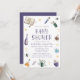 Host a spellbinding baby shower with this whimsical Halloween invitation featuring illustrated potion bottles, a spellbook, spiders, stars, moons, and mystical crystals. The playful purple “Baby Shower” text adds a touch of spooky fun, while the soft color palette keeps it perfect for celebrating the mom-to-be. A charming choice for Halloween baby showers or magical autumn gatherings.