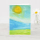A heartwarming greeting card featuring a bright, hand-painted watercolor sun and green meadow, created by a talented young artist. This cheerful "naive art" style card is perfect for sending a "get well soon" wish, a note of encouragement, or simply sharing a bit of sunshine with a friend.
