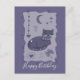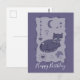 Whimsical Night Cat Folk Art Birthday Postcard Vykort
