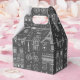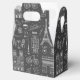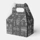 Den vita pentrutan/den lilla bagerilådan mönster har det bästa i Parislivet, från Eiffel Torn och Arc de Triomphe till bistro-sittande och makaroner. Vita dockor på grått-bakgrunden till kritskartan.