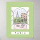 Whimsical Paris och Eiffel Torn "PARIS" Poster. En originalvattenfärgsfärg lägger till den här grönten gräns poster. Var du än är, behålla Paris nära med detta vismliga, handmålade teckning av en drömmisk Paris morgon, Eiffel torn i sikte genom ett vackert Fransk fönster, komplett med cappuccino och en croissant. Perfekt för frankofiler som kärlek Frankrike och all Fransk inspirerade till. Paris är alltid en Bra Idea! Perfekt för värdinna/värd- eller födelsedagspresent eller bara för behålla med dig för att handla resa.