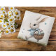Lägg till en touch av vår magi till en barnkammare eller lekrum med denna charmiga kudd. Framsidan har en illustration i handmålad stil av en fluffig vit kanin i en blårutig tröja som bär en korg med färgglada ägg. Baksidan visar en ren "Glad Påsk"-sentens, vilket gör den till en perfekt reversibel accent för säsongsbetonad heminredning.