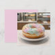 Detta tomma kort är lika "märkligt tillfredsställande" som det är sött! Detta unika notkort har en hyperrealistisk, glassliknande pastellfärgad munk med en skimrande, genomskinlig regnbågssyr och färgglada strössel. Perfekt för den bästa vännen, systern eller "estetikälskaren" i ditt liv, fångar detta kort den drömlika, lekfulla känslan av ett modernt konditori. Det är en kristallklar tolkning av en klassisk godsak som säkert sticker ut på vilken brösthylla som helst!