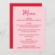 Whimsical Pink and Red Heart Wedding Meny