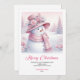 Whimsical Pink Snowman Digital Winter Scene Cards Julkort