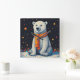 Whimsical Polar Bear In Orange Scarf Fyrkantig Klocka