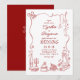 Give your guests a peek into the joyful, high-energy celebration to come with this charmingly illustrated invitation. Designed for the modern couple who values authenticity over formality, this suite captures the leading stationery trends of 2026: hand-drawn storytelling and monochromatic pops of color. Why It’s Trending for 2025 & 2026: The "Doodle" Aesthetic: High-end weddings are shifting toward "scribble" and doodle styles that feel like a personal sketchbook. It’s a move toward "Quiet Luxury" that feels approachable and warm. "Coquette" Details: Notice the delicate bows and flowing ribbons—a major 2025 trend that adds a touch of vintage romance and "ballet-core" elegance. Monochrome Red: While pastels have had their moment, bold cherry reds and deep bordeaux are the "it" colors for 2026. This two-tone red-on-white palette is chic, editorial, and timeless.