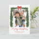 Share joyful holiday greetings with this whimsical watercolor Christmas photo card featuring your vertical photo framed by a pine garland adorned with soft white lights and topped with a festive red bow. “Merry Christmas” is displayed below in a whimsical red handwritten script, with your family name and year shown underneath. The back includes a second photo with space below for your custom message, creating a warm and festive way to send your holiday wishes.