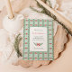 Den här fantastiska möhippan eller inbjudningskort för möhippa i stil under vintern har en färgstark, viskös juldesign. En ljust röd båge omges av botaniskt löv med vattenfärgad grönt, och en passande retro helgdag med ljust grönt bakgrund utgör det yttre ram.