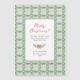 De här fantastiska, magiska helgdagskorten i stil i vintage har en färgstark, viskös juldesign. En ljust röd båge omges av botaniskt löv med vattenfärgad grönt, och en passande retro helgdag med ljust grönt bakgrund utgör det yttre ram. Trendigets skripttypografi säger "God jul".