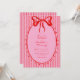 Denna fantasifulla inbjudan har en saftig röd akvarellbåge och en enkel oval prickig ram mot en lekfull röd och rosa randig bakgrund. Perfekt för ett bröllop med en preppy, avslappnad eller Alla hjärtans dag-estetik, ger denna charmiga design en söt, handmålad look för din speciella fest. Skapad av Simply Farmhouse Press.