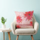 Whimsical röda blommor virvlande blad rosa kudde. Personifiera denna eleganta kudde med ditt namn.