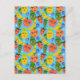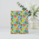 Whimsical Roligt Fruktsalladsmönster Blå Vykort