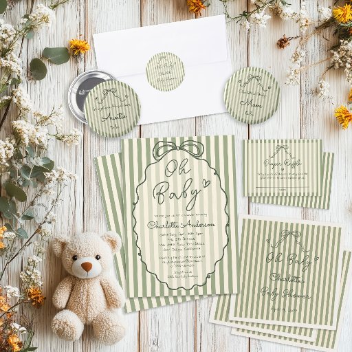 Welcome your sweet one with this sage gender neutral baby shower diaper raffle enclosure card. Designed with sage green stripes and a whimsical hand drawn bow, this modern, simple, and minimal design features a playful hand written fonts. Perfect for a boy or girl baby shower, this cute and understated enclosure card is ideal for a spring summer baby shower, offering a fresh, timeless look that’s easy to personalize. Please contact me if you have any special request for custom products.