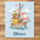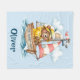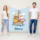 This charming personalized sailor bear blanket features an adorable brown bear wearing a classic yellow rain slicker and hat, happily steering his wooden boat.