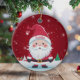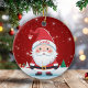 Whimsical Santa Claus Christmas Berry Red Ceramic Ornament with personalizable name on his hat. Father Xmas winter wonderland scene. Unique St Nick cartoon design. Snowy holiday character graphic illustration. The two-sided customizable Kris Kringle decoration always looks festive and complete, no matter how cute hanging decor turns. Order your custom gifts today and make your winter season extra special! đŸŽ„đŸŽ…đŸŒ Diameter: 2.87". Thickness: 0.156". Weight: 1.4 oz. Made of white porcelain. Full-color, full-bleed printing. Included gold thread does not come attached/tied.
