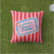 Bring a smile to your face with this whimsical throw pillow featuring a charming illustration of a vintage sardine tin. The design showcases two adorable blue fish peeking out from their pastel blue packaging, accented with playful stars. This graphic design is printed on a vibrant background of alternating red and light pink stripes, creating a fun and energetic look. It’s an ideal accent for a kitchen, den, or any room that could use a touch of playful, retro-inspired decor. This pillow is a fantastic way to express your unique style and add a dash of unexpected charm to your living space.