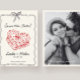 Whimsical and heart cake "Save the date" wedding invitations with room for a personalized photo in the back.