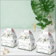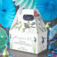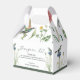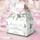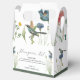 Hemligt trädgårdsbröllop med en modern eskort med vilda blommor och en fågel på vit bakgrund.