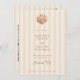 Featuring a beautiful watercolor shell at the top, this unique monogram can be customized with the initials of the bride and groom, adding a touch of intimacy and elegance to your wedding stationery. Whimsical handwritten font elements add a personal and playful touch to your announcement, complementing the minimalist design and inviting your guests with warmth and style. On the reverse side you'll find a photo template and ample space to add your wedding website information. Emphasizing simplicity and elegance, the overall layout is clean and uncluttered, allowing the watercolor shell and your wedding details to shine. This minimalist approach ensures that your invitation is both stylish and timeless. The text is presented in a neutral, mocha brown color, providing a sophisticated contrast against the soft almond colored, striped background. However, you can easily change the font color to match your wedding theme, ensuring a cohesive look throughout your stationery.