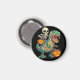 Whimsical Skeleton Riding Mummy T-Rex Halloween Magnet