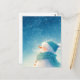 Celebrate the magic of winter with this heartwarming postcard. The artwork features an adorable, smiling snowman wearing a cozy teal knit hat with a fluffy white pom-pom and a matching teal scarf. Captured in a profile view, the snowman gazes upward at a breathtaking night sky filled with shimmering, multi-colored stars and soft falling snow. The deep indigo blue background creates a beautiful contrast with the soft white textures and warm orange carrot nose. This postcard is a perfect choice for sending holiday cheer, winter birthday wishes, or a cozy seasonal greeting to friends and family.